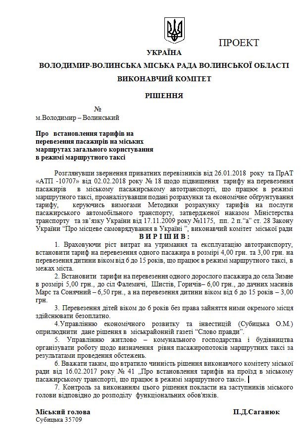 В проекті зазначено, що рішення стало наслідком колективного звернення від перевізників, яке надійшло до міської ради 25-го січня поточного року.