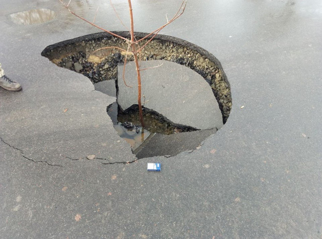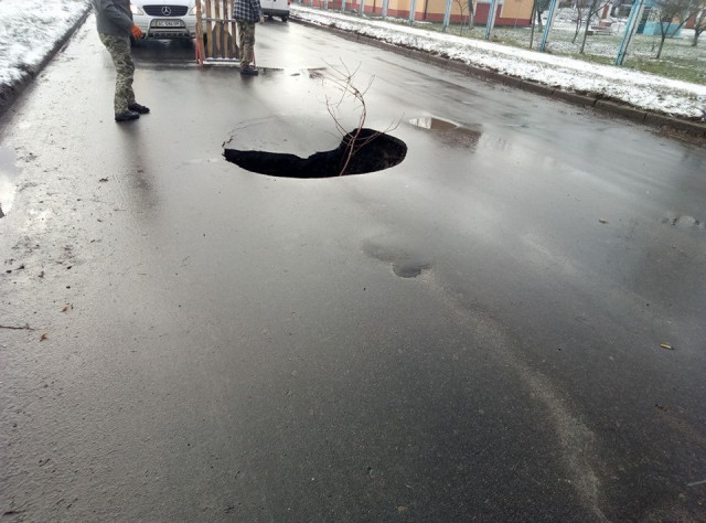 У Володимирі-Волинському провалилася дорога, утворилася величезна яма