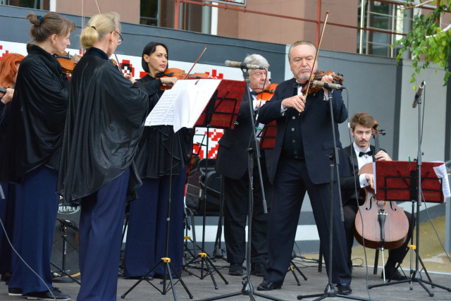 Сергій Єфименко додав, що мистецький дворик розглядає не лише як концертну залу філармонії, в й спільний культурний простір, відтак запрошує до співпраці інші творчі колективи, культурні спілки, громадські та науково-освітні організації. До прикладу, вже днями тут під відкритим небом у рамках національного туру «Кіно заради Перемоги!» демонструватиметься стрічка «Захар Беркут».Сьогодні ж філармонія представила публіці власну концертну програму. Її розпочав камерний оркестр «Кантабіле» композицією Карла Дженкінса «Палладіо». Саме її найчастіше просили на біс наші захисники під час гастрольного туру філармонічного колективу по шпиталях та військових формуваннях на сході та півдні.