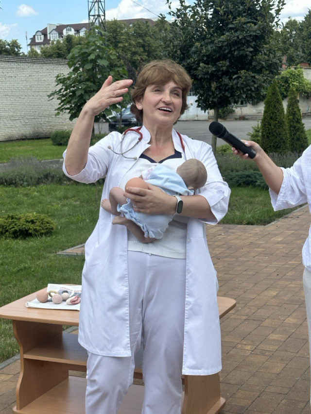 Майстер-клас із правильного прикладання до грудей та відповіді на питання учасниць сьогоднішньої зустрічі забезпечила лікарка-неонатологиня та консультантка із грудного вигодовування Наталія Пасюк.