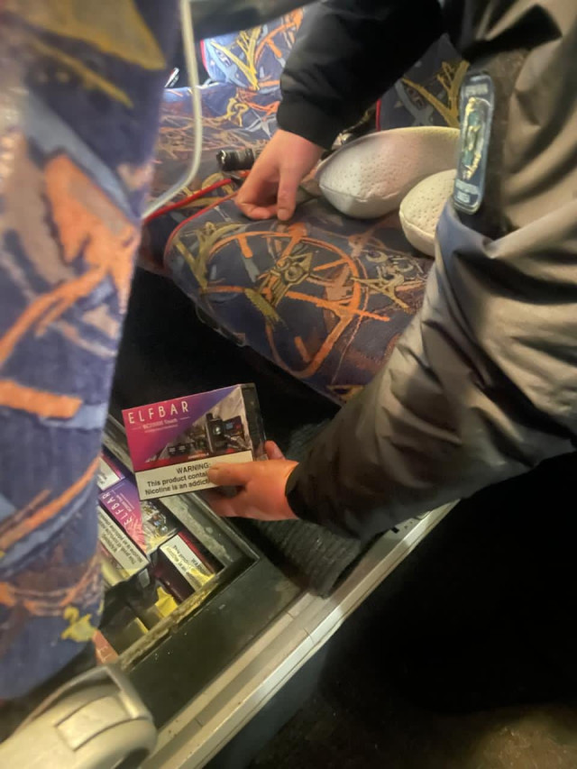 Йдеться про 700 одноразових електронних цигарок торгової марки Elfbar. Підакцизну продукцію було виявлено у ніші для речей під одним із пасажирських місць автобуса.
