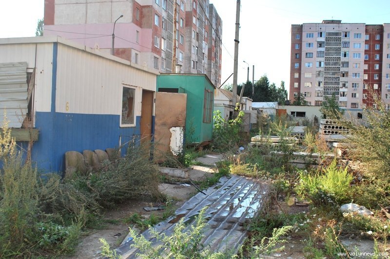 Праворуч від одного з будинків фірма-забудовник вирила котлован. Сух каже, що тут мало бути комерційне приміщення, яке навіть у документації не вказане. Нині у великій ямі будівельне сміття та стоки вод.