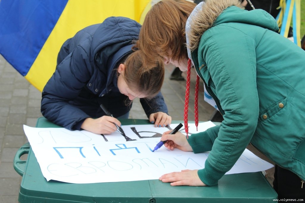Акція на підтримку євроінтеграції стартувала 22 листопада о 10.30 на Театральному майдані у Луцьку.
