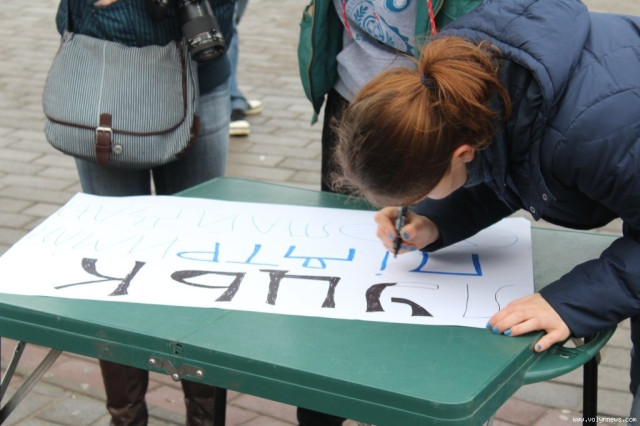 Дехто з перехожих підходить та цікавиться, з якою метою зібралася молодь, висловлює підтримку протестувальникам.