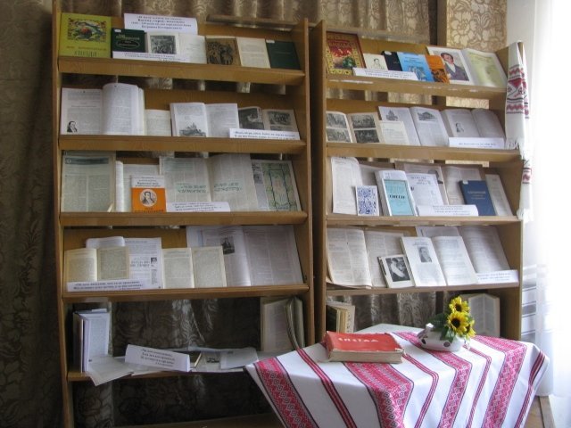 Мені подобається організовувати літературні виставки, – розповіла пані Бондарук. Цього разу бібліотекар обрала для показу читачам експозицію, присвячену Івану Котляревському. «Тут представлено життя Котляревського, його книги, вирізки, статті про сторінки життя», – сказала вона.