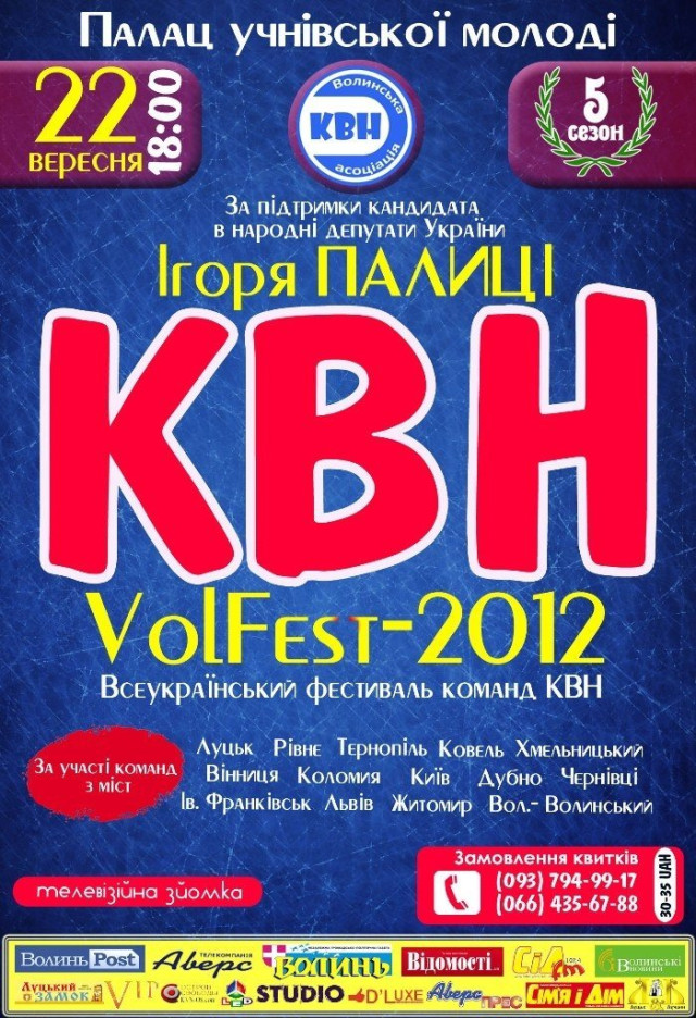 П'ятий сезон Всеукраїнської ліги КВН «Волинь» стартує у Луцьку. Розпочнеться він 22 вересня із традиційного відбіркового фестивалю команд КВН «VolFest».