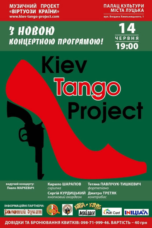 Концерт колективу «Kiev-Tango-Project» вiдбудеться у Палаці культури мiста Луцька 14-ого Червня о 19:00.