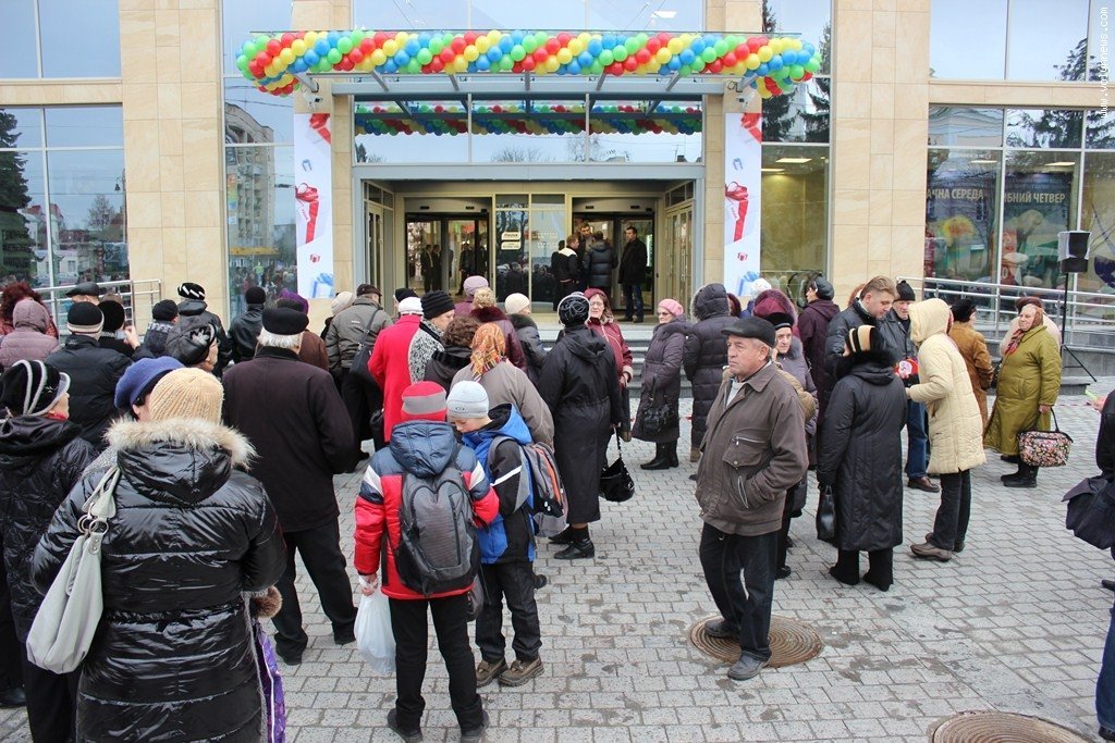 Замість традиційного перерізання стрічки адміністрацією – лише зняття своєрідної огорожі. За лічені секунди «хвиля» людей «ринула» у приміщення. Охоронцям довелося «попотіти»: двері працюють в автоматичному режимі, а охочих побачити оновлений універмаг було більш ніж вдосталь.
