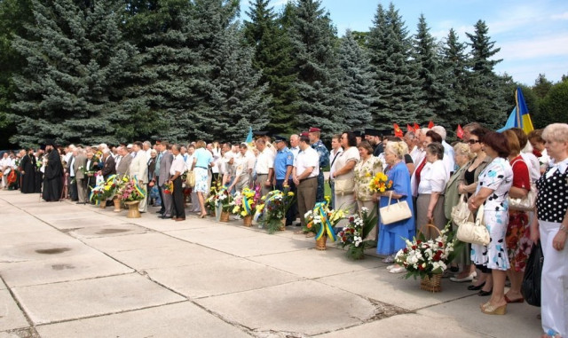 До привітальних слів приєднався голова Волинської облради Анатолій Грицюк. «Завдяки мужності і стійкості нашого народу загарбники були розгромлені», – висловив він своє переконання. «Пройдуть роки, але ми приходитимемо на це місце, щоб схилити голову у великій шані тим, хто не повернувся із війни», – додав Анатолій Грицюк. Також голова облради перерахував жертви, які понесла Волинь: приблизно 165 тисяч волинян загинуло, 20 тисяч відправили у концтабори, 107 населених пунктів стерті з лиця землі.