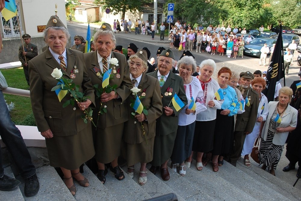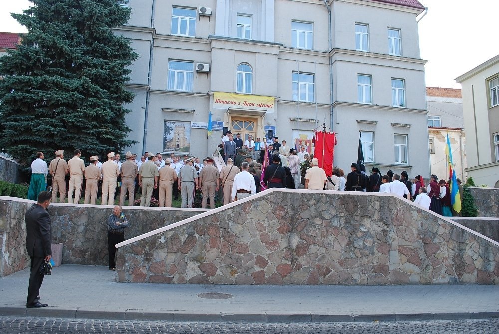 Урочистості з нагоди Дня Державного Прапора України відбулися просто на східцях перед Луцькою міською радою. Про це інформує 23 серпня репортер «Волинських Новин».