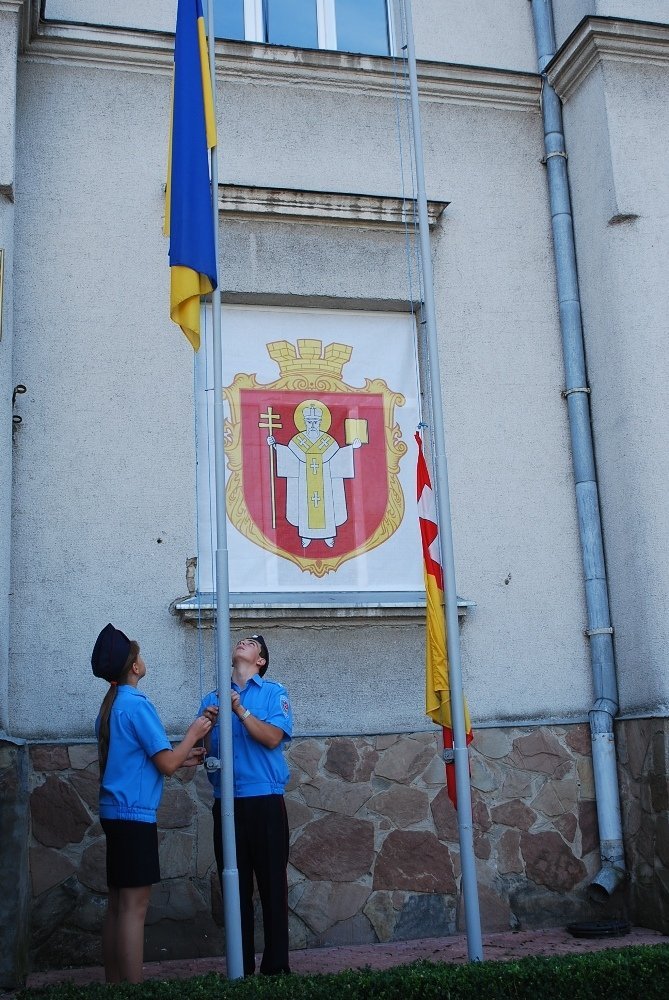 Згодом здійснили урочисту церемонію підняття Державного Прапора та прапора міста Луцька. Під час цього лунали постріли з козацької гармати.