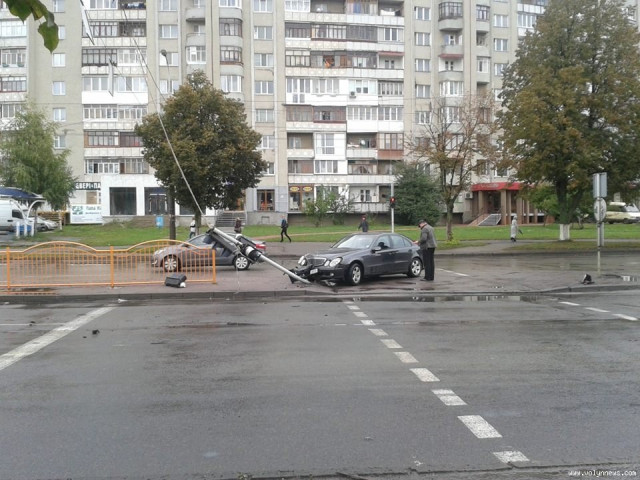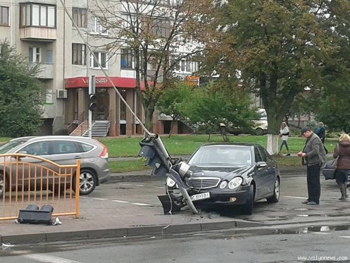 У Луцьку «Мерседес» врізався в опору світлофора. ФОТО