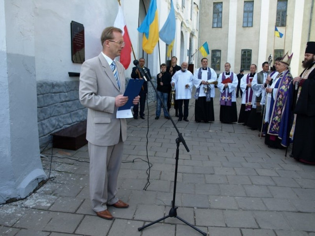 Представники церкви зачитали молитву та освятили пам’ятну дошку. Також із промовою виступили представники дипломатичних корпусів. А про свої спогади про ту ніч розповіла очевидець Барбара Дембовська. По завершенні відкриття пам’ятної дошки відбулося покладання квітів у знак скорботи за невинно загиблими мешканцями міста.