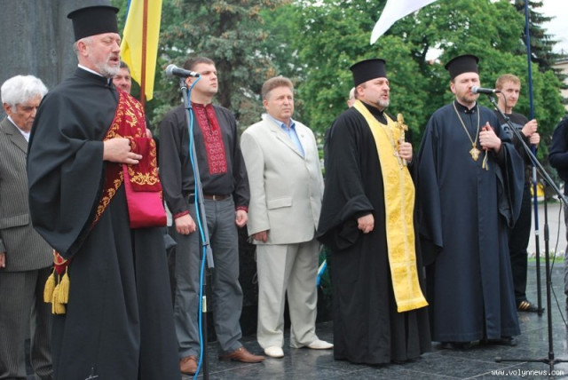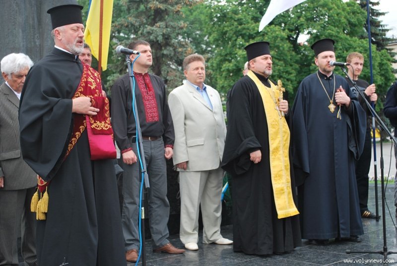 Перед виступами промовців коротеньку службу провели священики Свято-Троїцького кафедрального собору.