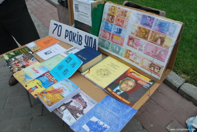 На площі стояло кільканадцять наметів, де волонтери опозиційних партій роздавали агітаційні матеріали. Також на майдані збирали гроші на пам’ятник лідеру ОУН Степану Бандері в Луцьку та продавали книги про національно-визвольну боротьбу українського народу.