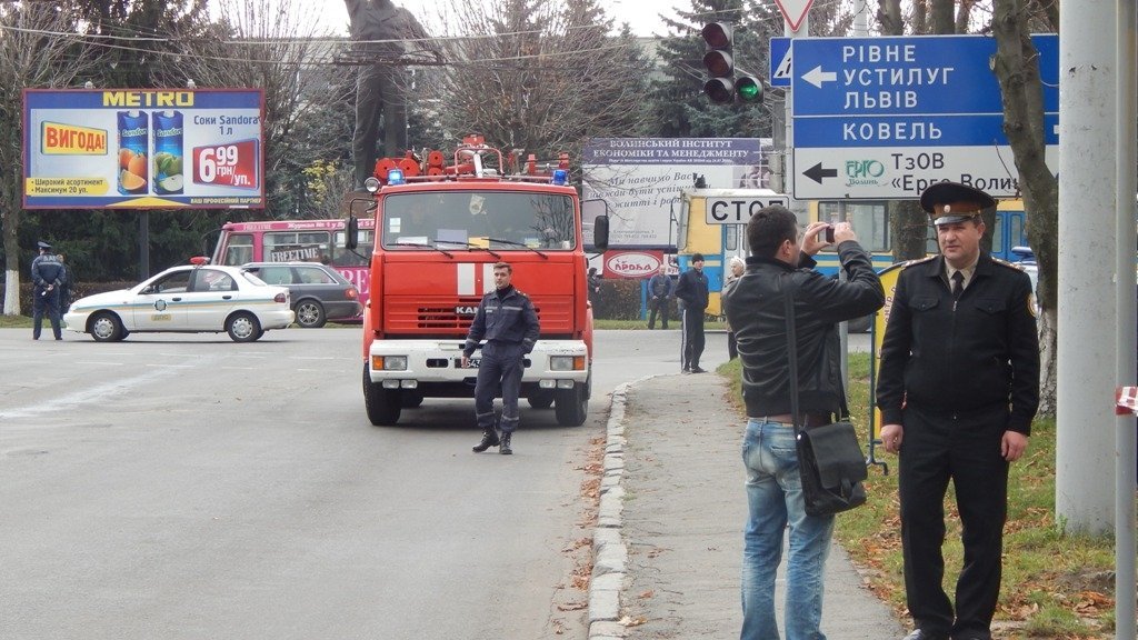 Зі слів керівника СЗГ УМВС в області Оксани Блищик, до міліції надійшов дзвінок із повідомленням про замінування приміщення Волинського головного регіонального управління «Приватбанку» по проспекту Відродження.