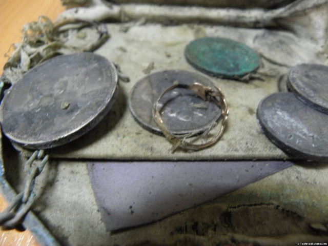 «Ми знайшли два скарби. Перший - у північній частині комплексу, на глибині метра 70 сантиметрів. Це була жіноча металева сумочка, а всередині - 5 срібних монет часів правління російського імператора Миколи ІІ. А ще в ній було два золотих персня. Другий скарб знайшли у східній частині розкопок. Це - срібні ложки і чаші загальною вагою два кілограми. Так названий єврейський скарб, що датується кінцем ХІХ початком ХХ століття. Окрім того, знайшли глиняні вироби, фрагменти заліза тощо. Унікальна тут і цегла з клеймом «Лондон». На ній можна побачити різні написи, а деколи ініціали, очевидно того, хто виготовляв будматеріал для підземелля», - каже науковець.