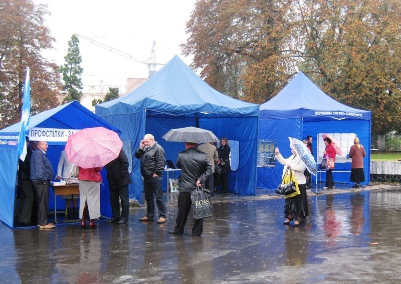 Інформаційні намети для ознайомлення людей з їх трудовими правами, законодавчими нормами, що регулюють трудові відносини, вільними вакансіями в області працюють сьогодні на Театральному майдані Луцька. Про це 7 жовтня інформує репортер «Волинських Новин».