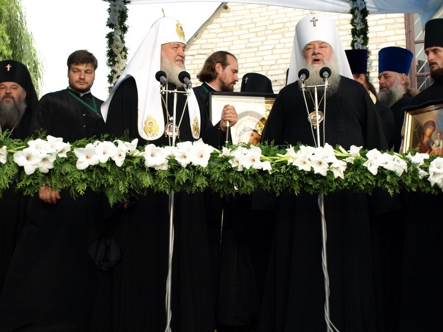 Дорога до собору встелена квітами і травою, а храм та ікони в старих окладах буквально потопають в пишних букетах і вінках із червоних троняд, гладіолусів та айстр. Їх місцеві жителі нібито спеціально вирощували з нагоди приїзду глави РПЦ, – повідомляє Інтерфакс.