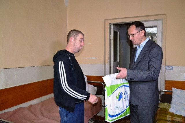 З нагоди свята Орест Маховський вручив солодощі та сертифікат на придбання товарів у гіпермаркеті «Нова лінія» на суму 1000 грн для учасників АТО. Подарунки отримали 45 пацієнтів та 2 працівники закладу.