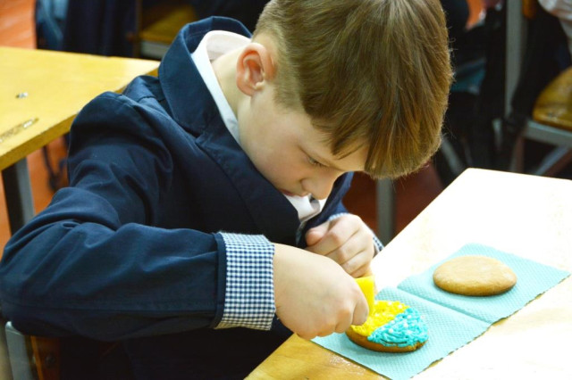 Для учнів початкових класів було організовано творчий майстер-клас із розпису пасхального печива.