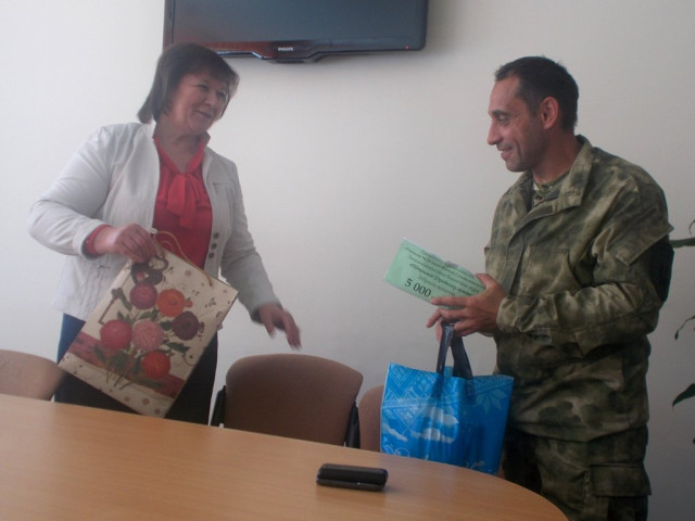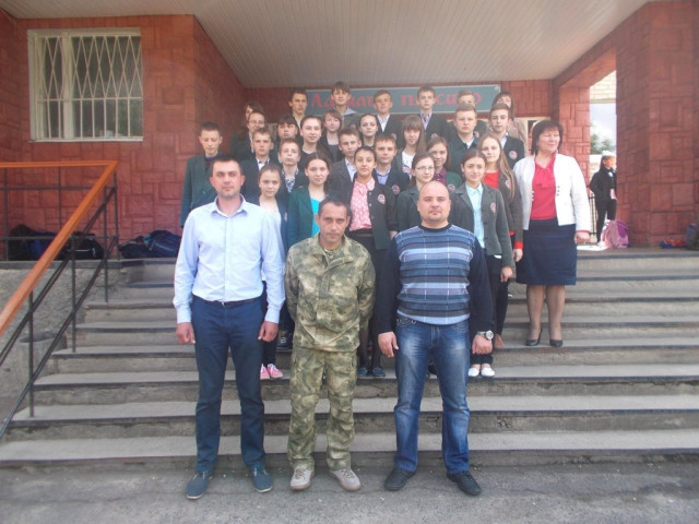 тиловим забезпеченням новоствореного батальйону «Донбас Україна» подякував учням та викладачам за допомогу і подарував шеврон батальйону напам`ять