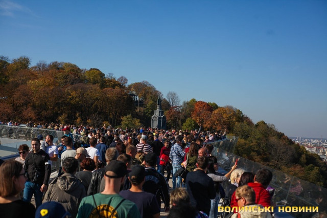 Також, віддавши шану Героям, ми попрямували на Майдан Незалежності та Хрещатик, який в цей день був перекритим. До слова, і головною вулицею столиці гуляло чимало вболівальників, приїжджих португальців видно не було.Пройшовши далі Хрещатиком, нарешті можна було купити каву трішки дешевше, ніж за 40 гривень, тож прокинувшись, наша трійка вирішила піти до місця, де й мала відбутися найголовніша подія сьогоднішнього дня, – НСК «Олімпійського». Тут, окрім продавців фанатської символіки, поки нічого не нагадувало про мегаматч. Відтак, погулявши на площі перед найголовнішою ареною країни, ми вирішили найти місце пристанку, аби перекусити.Відтак, знайшовши затишний скверик, ми сіли на лавку, дістали з рюкзаків заготовлені напередодні хліб з ковбасою та почали складати план наших подальших дій. Вирішили піти на набережну Дніпра, а звідти на вже легендарний міст Кличка.Вибравшись від набережної на гору до мосту, нарешті на нього зайшли, ну як зайшли – пробралися крізь сотні людей, які хочуть зробити круті фото на фоні неймовірних краєвидів Дніпра та селфі, як вони стоять на скляній прозорій поверхні.Пробравшись крізь натовп, нарешті дісталися до Володимирської гірки, звідки вирушили на Контрактову площу. Не секрет, що зазвичай кожен, хто їде до Києве, має тут родичів, друзів чи знайомих. Так сталося і в нашому випадку: два Андрії були непроти, щоб я побачився зі своїми тітками. Проминувши трішки Контрактову площу, ми зайшли в дворик кафе, де працює одна з тіток, а там нас напоїли «халявним» пивом та дали ще в дорогу.Подякуваши тітці за гостинність, ми вирішили повернутися на Контрактову площу, де вже своїми танцями розважали натовп кришнаїти. Забігаючи наперед, скажемо, що великі натовпи португальців в Києві ми не зустріли, побачившви дише двох фанатів європейських бразильців з розами саме на Контрактовій площі.