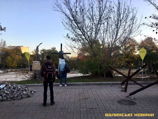 Підкріпившись, ми пішли шукати метро, щоб добратися до серця нашої країни – Майдану Незалежності, втім вийшовши на цій станції, все ж спершу вирішили піти на вулицю Інституську, адже сце саме був День Захисника України.Будівлі цієї вулиці бачили смерть Героїв Небесної Сотні у лютому 2014 року. Нині ж на Інститутській фактично кожен квадратний метр нагадує про ті жахливі сторінки української історії: тут є місця пам’яті кожного вбитого Героя, а на деревах та парканах висять жовто-блакитні стрічки. На фото також є і волиняни, які віддали свої життя за гідність: Олександр Бадера, Сергій Байдовський та Василя Мойсея.На всій Інститутській стоять жовті таблички з написом «Національний меморіальний комплекс Героїв Небесної Сотні – Музей революції гідності», але й тут знайдеться ложка дьогтю, бо біля цих табличок розкидане сміття, що не надто гарно виставляє українців в плані шанування своїх героїв.Цікаво, що саме на Інститутській з самого ранечку ми почали зустрічати людей в українській символіці та з фанатськими розами (шарф, - О.З.), очевидно, кожен з вболівальників вважав за необхідне віддати шану загиблим героям, тим більше у такий день.