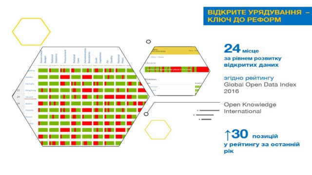 У світовому рейтингу відкритості державних даних Global Open Data Index за 2016 рік Україна піднялася до 24 позиції з 94 країн світу, тоді як у 2015 році посідала 54 місце.