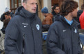 Попереду колони йшов наставник збірної Словенії Сречко Катанец. Тренер щось активно обговорював з одним зі своїх підопічних. Установка на гру?