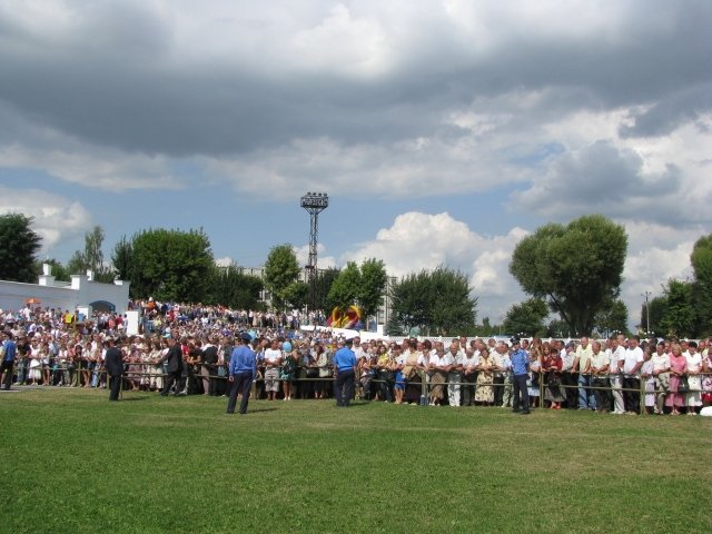 Прем’єр-міністра на стадіоні зустрічали мешканці шахтарського краю. Усі вони прийшли послухати її привітання з Днем міста Нововолинська та Днем шахтаря.