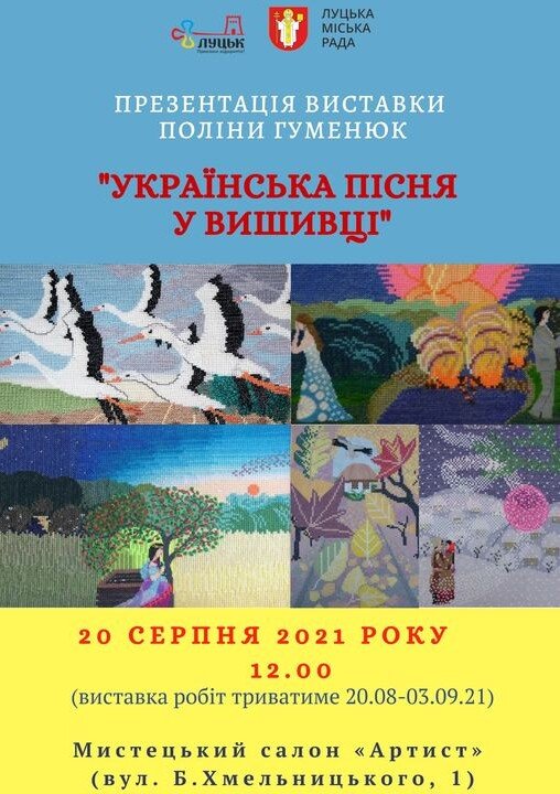 Відкриття виставки відбудеться 20 серпня о 12 годині у мистецькому салоні «Артист» (ІІ корпус Палацу культури Луцька, вул. Богдана Хмельницького, 1).