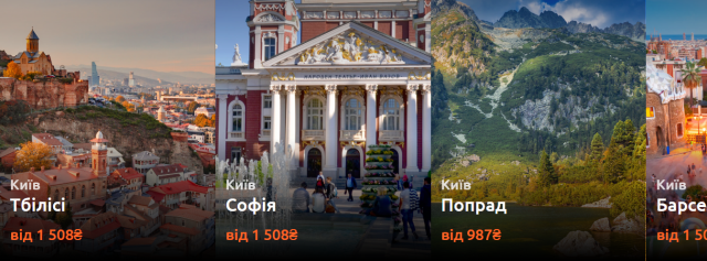Мінімальні ціни в одну сторону в Тбілісі - від 1508 грн, в Софію - від 1508 грн, в Попрад - від 987 грн, в Барселону - від 1508 грн.