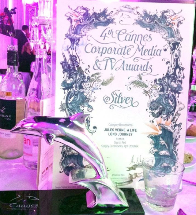Згідно з інформацією компанії FILM.UA, документальна стрічка Михайла Кострова «Жуль Верн. Подорож довжиною в життя», виробництва FILM.UA та Signal Red, отримала нагороду «Срібний дельфін» в категорії «Документальна драма» на Cannes Corporate Media & TV Awards.