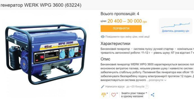 На сайті найбільшого в Україні онлайн-ритейлера Rozetka генераторів нема.