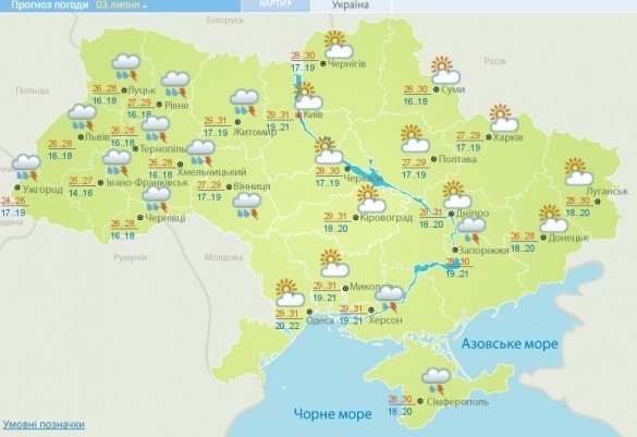 Температура сьогодні, 3 липня, вдень підніметься до позначки 30 градусів. У Державній службі з надзвичайних ситуацій українців попередили, що країною пройдуть сильні дощі, також очікуються грози, - пише ТСН.