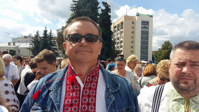 Голова Волинської обласної регіональної парторганізації УКРОПу, радник голови облради Вячеслав Рубльов на Театральний майдан прийшов із своїм старшим синочком Вадимом.