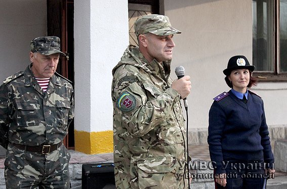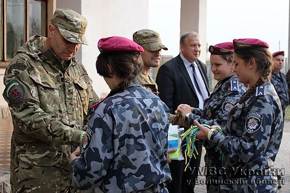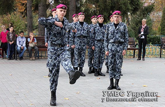 Як ідеться в повідомленні, вихованці Луцького навчально-виховного комплексу “Загальноосвітня школа І-ІІІ ступенів – правознавчий ліцей з посиленою фізичною підготовкою” очікували цей день по-особливому. Вишикувавшись на плацу, майбутні правоохоронці чекали на тих, хто в непростих умовах війни, ризикуючи життям, боронить на Сході незалежність і територіальну цілісність. Вигуками «Слава Україні! Героям Слава» розпочалася урочиста лінійка, яку керівництво навчального закладу ініціювало з приводу зустрічі командира роти особливого призначення «Світязь» капітана міліції Олександра Фацевича та його заступника лейтенанта міліції Ігоря Дрючана.