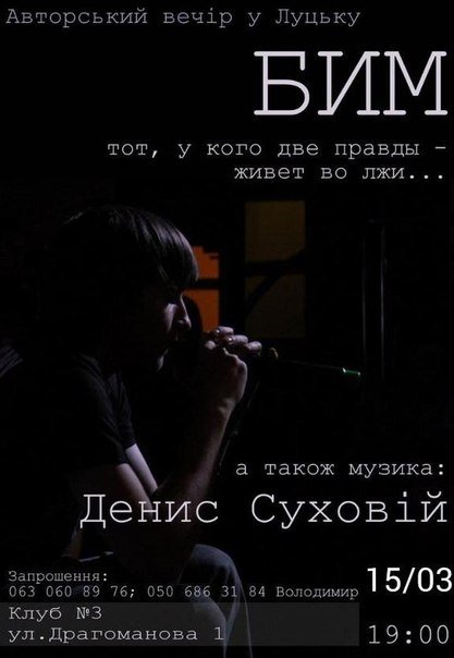 Його вірші, кажуть організатори, пробирають до кісток. «Або ж ні, вони пробираються нервами у найтемніші закутки і дістають те, що ви старанно там ховаєте. Не пропустіть цю мить, коли на поверхню виходить щирість», - закликають лучан.