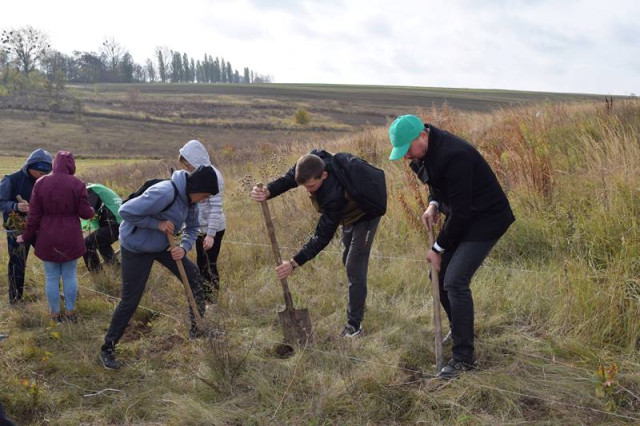 «Нещодавно наш односельчанин, учасник АТО Микола Денисюк, посадив у селі саджанці яблунь у формі тризубу. Тож ми вирішили підтримати таку гарну ініціативу і посадити поруч буки, які є символами загиблих воїнів, а не зброї.