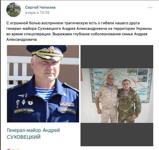 На території України знищили заступника командувача 41 армії Росії, колишнього комдива 7 дивізії ВДВ, генерал-майора Андрія Суховецького.
