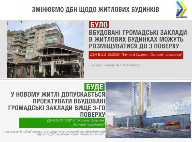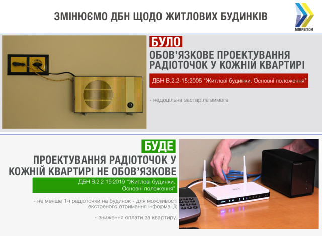 "вбудовувати громадські заклади на будь-яких поверхах.." ви хоч уявляєте що на любому поверсі тепер може з'явитись казино,піцерія...?А вільне планування несучих стін не передбачене?А для чого радіоточка в квартирі,навіть ніхто не знає,єдине джерело у випадку війни чи іншому випадку відключення інтернету,мобільного зв'язку по якому можна повідомити населення...Розумні люди розробляли ці ДБН,прийшли молоді,думають що все знають і зробили по своєму,коли почнуть падати будинки,от тоді знов змінять