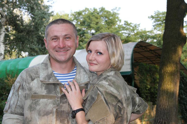 "Вони розписались вчора у РАГСі тепер вже відомого на весь світ Донбаського міста Слов’янськ. Познайомилися молодята ще рік тому під час служби в одній з військових частин високо мобільних десантних військ. Їх поєднало небо десанту. Разом служили, разом наповнювали блакиттю парашути. Разом пішли боронити свою Вітчизну у годину негоди. А тепер разом ітимуть по життю", - повідомляють у прес-службі АТО.
