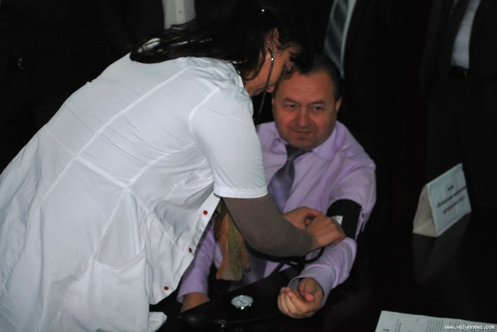Секретар Луцької міської ради Григорій Пустовіт спочатку не хотів дізнаватися про стан свого здоров’я. «Не знаєш – здоровіший. Ну, добре – поміряю, це мені приклад Лариса Миколаївна Соколовська показала. Але мені немає за що переживати, у мене 90 на 70», − прокоментував Григорій Пустовіт.