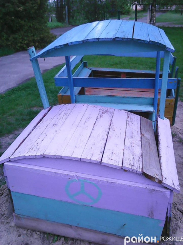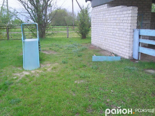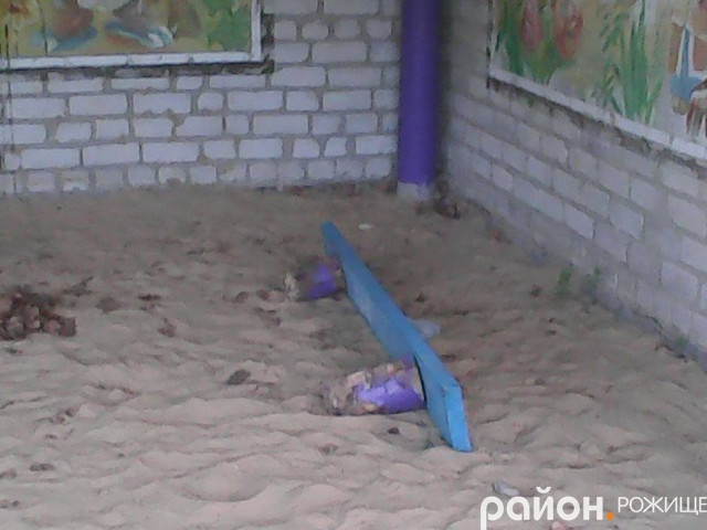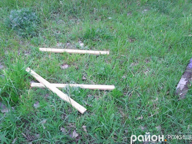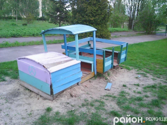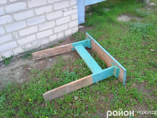 Зі слів пана Віктора, недавно на майданчику зробили «паровозик», так ті вандали й до нього добралися, повиламували дощечки, які потім викинули за паркан, на територію місцевого відділку МНС.