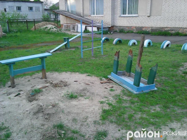 Вандали потрощили дитячий майданчик перед дитсадком у селищі Дубище Рожищенського району.