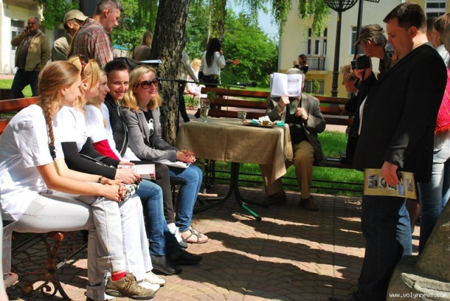 Під час розповіді краєзнавця вулицею ходили волонтери та працівники муніципалітету, зокрема й начальник управління міжнародного співробітництва та туризму Микола Іванюк, вбрані у футболки з туристичним логотипом Луцька, які роздавали брошури про заходи, що відбудуться в обласному центрі протягом 2012 року.