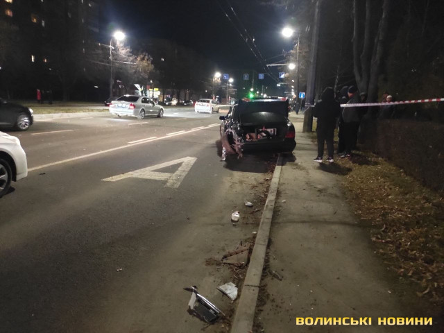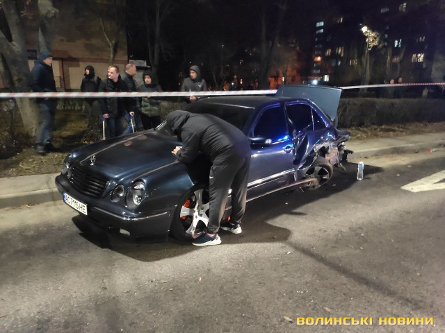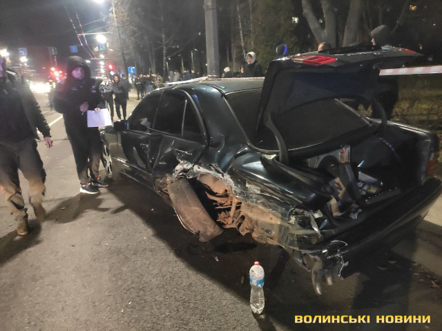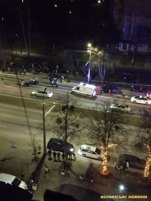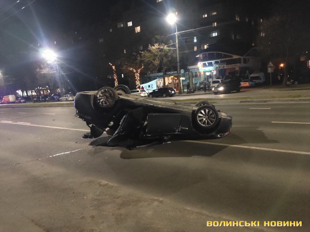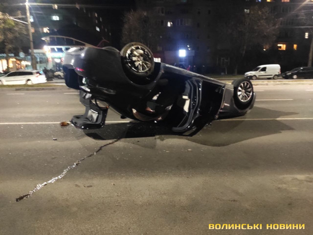 Вечірня ДТП у Луцьку: BMW – на даху, Mercedes – під бордюром. Фото