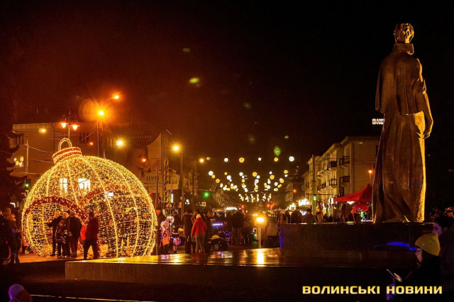 Вечірній Луцьк зачаровує новорічними вогнями. Фото