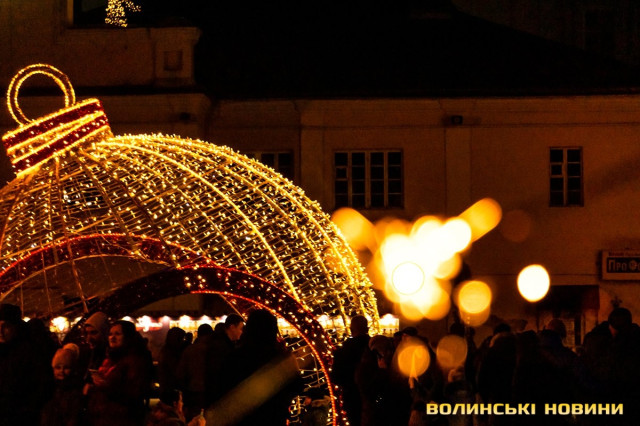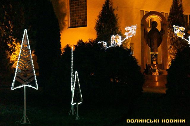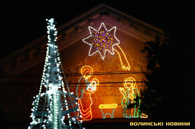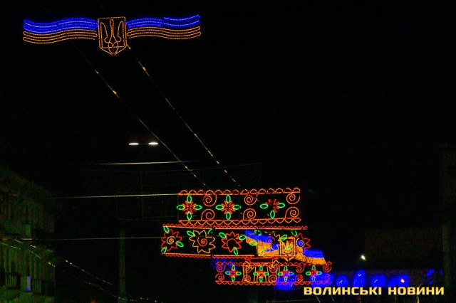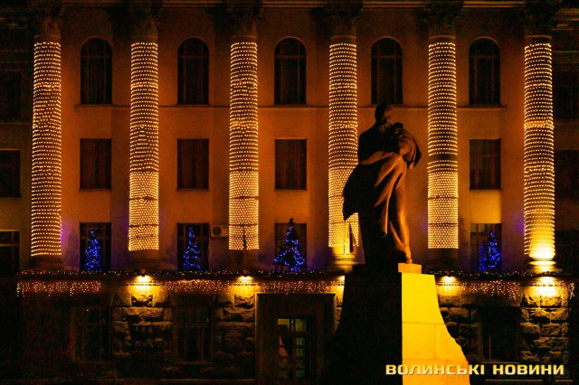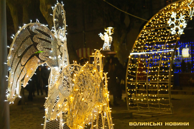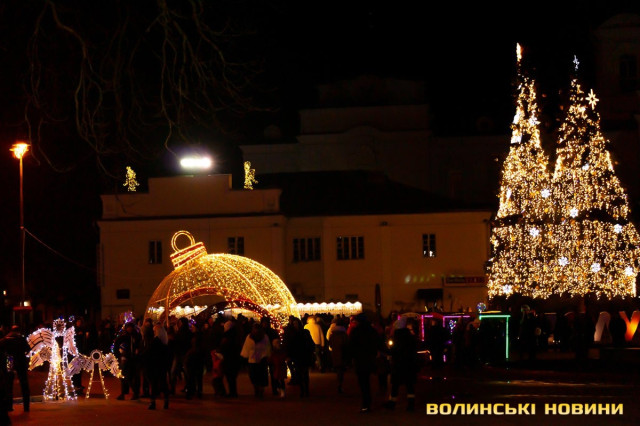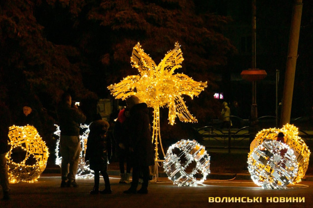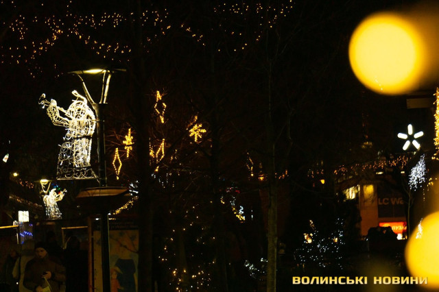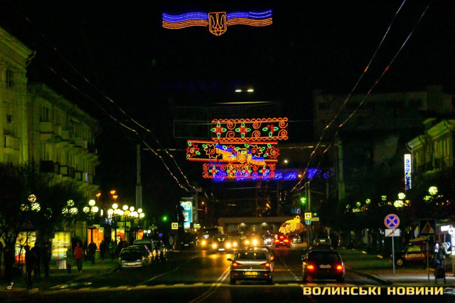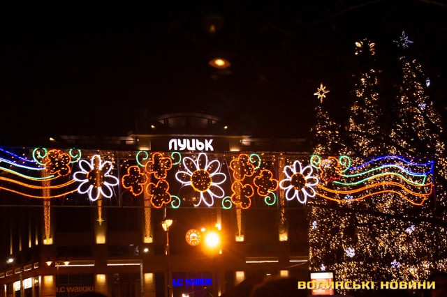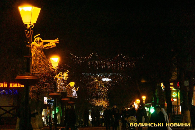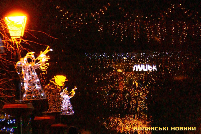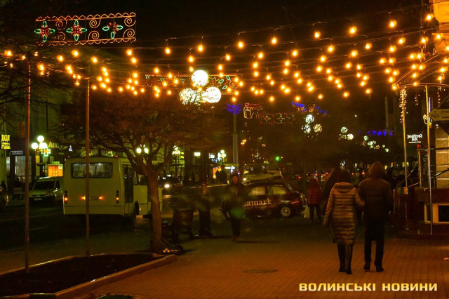 Вечірній Луцьк зачаровує святковими вогнями. Фото, відео